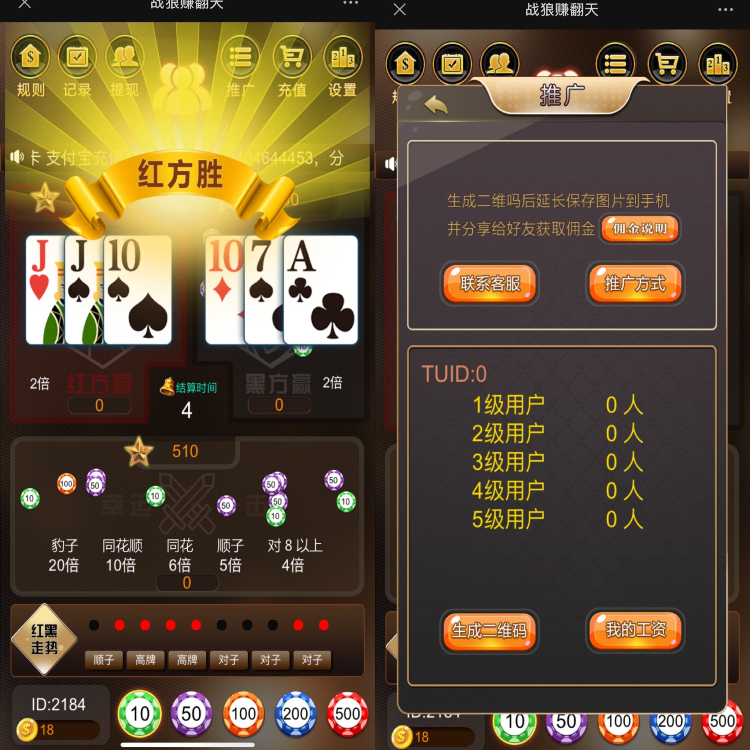 H5红黑大战 扎金花 最新无授权游戏源码 6级返佣+支付接口