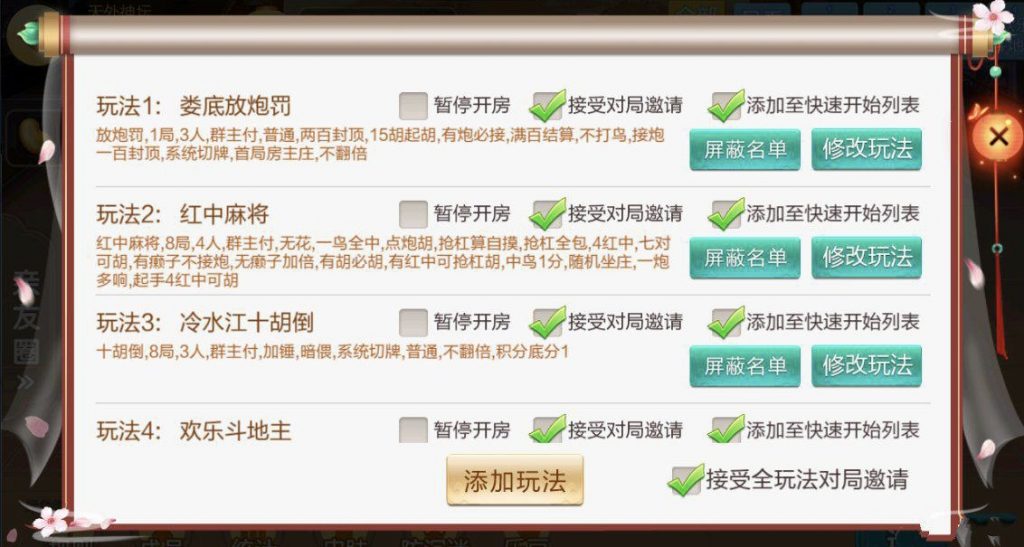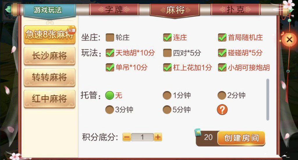麻将:急速8张麻将,长沙麻将,转转麻将,红中麻将 扑克:11张跑得快,跑得快,斗地主 字牌:娄底放炮罚,冷水江十胡倒