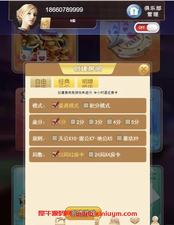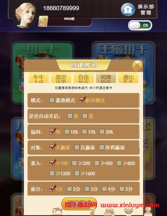 俱乐部+积分场+开房记录+战绩+代理+胜率控制+透视控制。