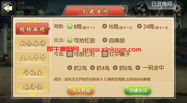 傲玩房卡版江西新余MJ程序组件,这是属于二次开发的版本,程序包含服务端、子游戏、网站、数据库,包括斗地主、牛牛、MJ等多款游戏。